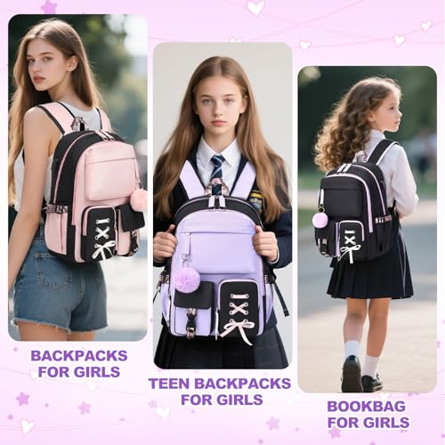 HOT ! Backpack for Girls Women College Laptop Backpacks Girl Cute School Bag Kids Bookbag with USB Charging Port College Middle High Elementary School Backpack for Teen Girls Travel Daypack (Black)