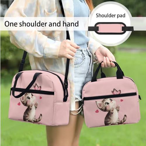 HOT ! Cute Cartoon Cat Backpack School Bag for Girls Kids Teen Schoolbag Bookbag with Insulated Lunch Bag Pencil Case Set Elementary School Daypack Pink