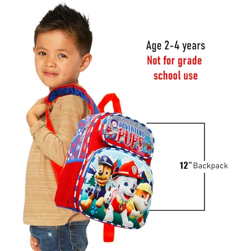 • This Paw Patrol preschool bag bundle includes one 12" backpack with adjustable shoulder straps and top loop for hanging featuring colorful artwork of Chase, Marshall, and Rubble.