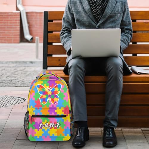 Personalized Kids Backpack, Autism Awareness Gift for Boys & Girls, Custom Name School Bag Large Capacity Backpack with Adjustable Straps Travel Daypack 16 In (Colorful Butterfly) 4