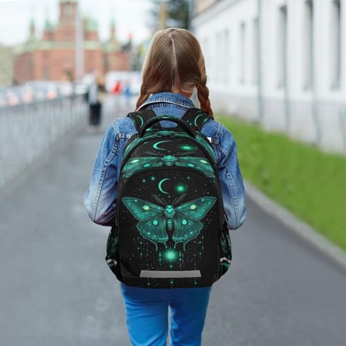 Luna Moth with Moon Backpack for Boys Girls Kids Elementary Bookbag School Bag Students Daypack Travel Rucksack 6