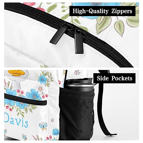 HOT ! Blue Floral Cute Goose Personalized Kids School Backpack Custom Name for Boys Girls Primary Daypack Bookbag Travel Bag