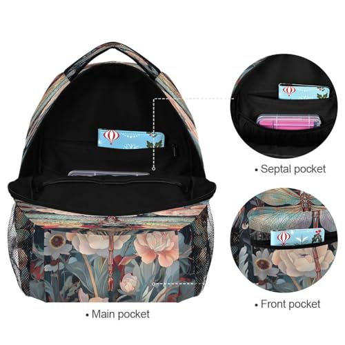 Dragonfly Flower Backpack for School Boys Girls Adults Kids Bookbag Laptop Bag 15L 6