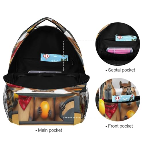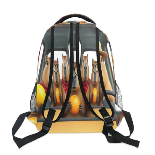 HOT ! Dussdil Funny Capybara Driver Cars Kids Backpack School Backpacks for Boys Girls 16 IN Book Back Pack Bag Casual Travel Daypack with Adjustable Shoulder Strap Zipper