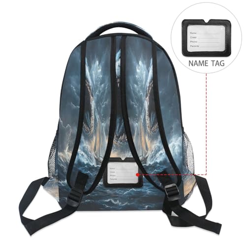 Shark Fish Boat Ocean Backpack for School Boys Girls Adults Kids Bookbag Laptop Bag 15L 4