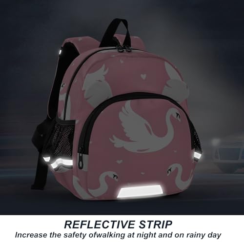 Kid's Backpack for Boys & Girls Toddler Bag Pink Background White Swans and Hearts Pattern Backpack with Safety Leash 5