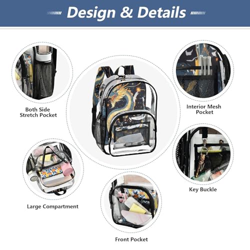 Dream Dragon Star Clear Backpack Heavy Duty See Through Transparent PVC BookBag for Kids Boy Girl School Work 5