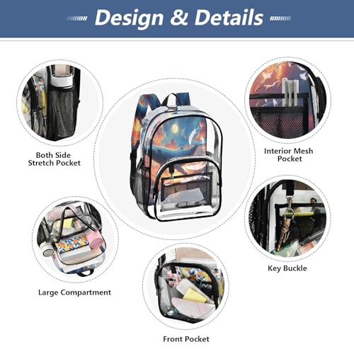 More information about Whale Cloud Ocean Clear Backpack Heavy Duty See Through Transparent PVC BookBag for Kids Boy Girl School Work