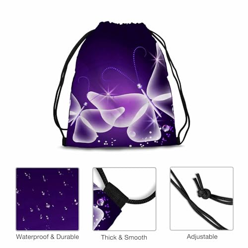 HOT ! Two Butterfly Big Small Bubbles Bright Star Purple Background Drawstring Backpack Gym Backpack Draw String Shoe Swim Back Bag for Women Men 14x16.9 Inch