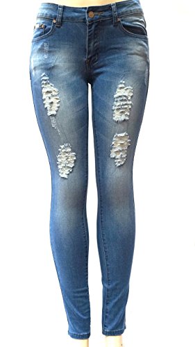 J&C 1826 Womens Blue Denim Stretch Jeans Destroy Skinny Ripped Distressed Pants 1