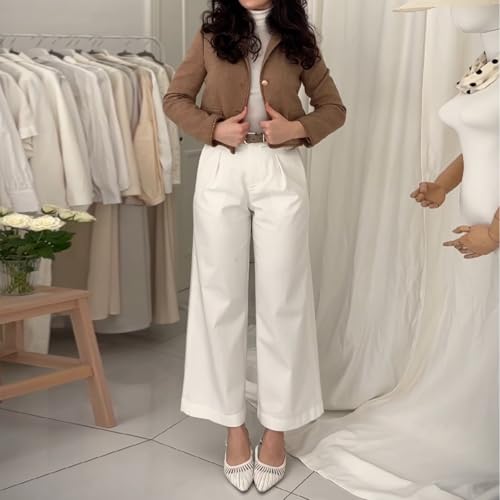 HOT ! Women High Waisted Baggy Jeans Trendy White Straight Leg Full Length Boyfriends Jeans Y2K Denim Pants with Pockets, 27