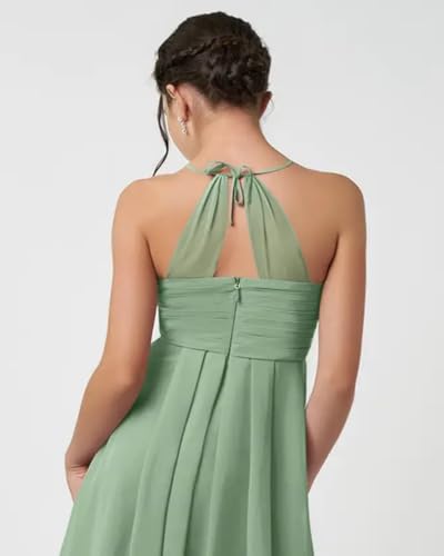 Halter Neck Short Junior Bridesmaid Dresses for Wedding Pleated Chiffon Flower Girl Dress Knee Length Formal Dress 6