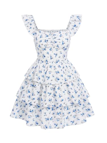 COZYEASE Girl's Floral Summer Dress Ruched Sweetheart A Line Dresses Ruffle Shirred High Waist Spring Dress 1