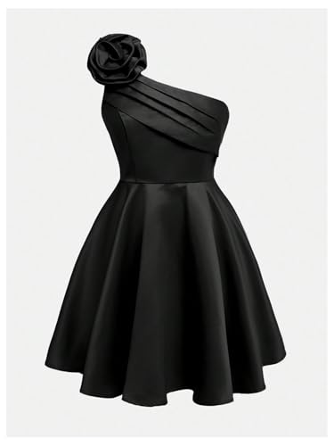 Floerns Girl's Elegant Short Dress 3D Floral One Shoulder Birthday Prom Dresses 3