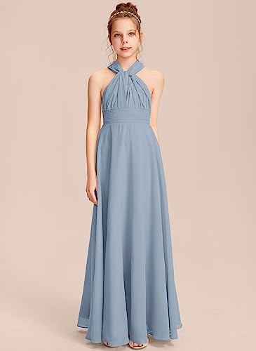Halter One Shoulder Junior Bridesmaid Dress V Neck Floor Length Flower Girl Dresses for Wedding Teen Girls Party 4