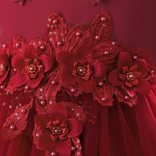 • ✨ Exquisite Design & Elegant Details: This stunning sleeveless formal gown features a delicate round neck and an intricately embroidered bodice adorned with beautiful 3D floral appliqués on the front. A large, elegant satin bow on the back and a hidden zipper ensure effortless dressing and a perfect, charming fit for your little princess.