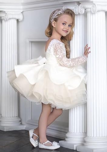 Flower Girl Dresses for Wedding Long Sleeve Toddler Girls Christmas Pageant Dresses Puffy First Communion Dress 4