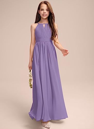 Junior Bridesmaid Dress, Flower Girl Dresses Bow Pleated Halter Floor-Length Chiffon Formal Dress for Party Wedding 1