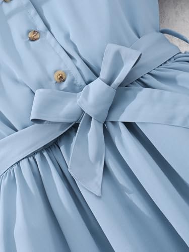 New 8-12Years Girls Midi Dress Puff Sleeve A-Line Tie Waist Button Front Casual Party School 7