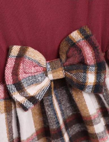 Crazyme Toddler Girl Clothes Square Neck Puff Sleeve Top Bowtie Toddler Dress Plaid Skirt Set Fall Winter Girls Outfits 3T-8Y 5