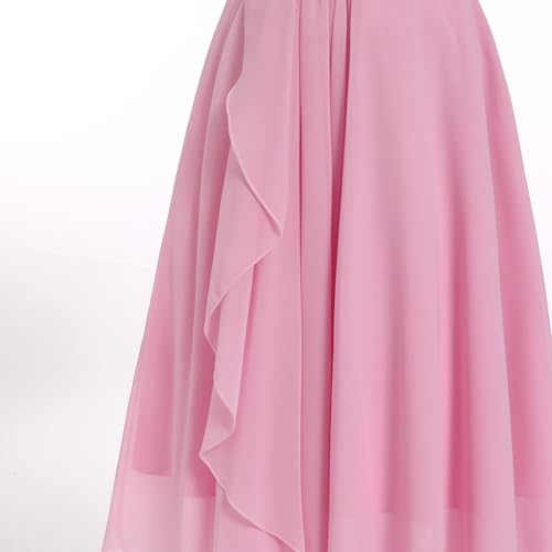 • Girls Chiffon Maxi Dress: Junior bridesmaid flower girl wedding maxi chiffon dress, tween kids girls ruched ruffle V-neck chiffon dress flowy a-line asymmetrical chiffon dress, little big girls pageant formal pageant long chiffon gown summer sleeveless spaghetti straps dress, elegant and gorgeous girls first communion birthday party prom homecoming reception dress gowns for 5-14 year-old baby toddler kids teen tween girls