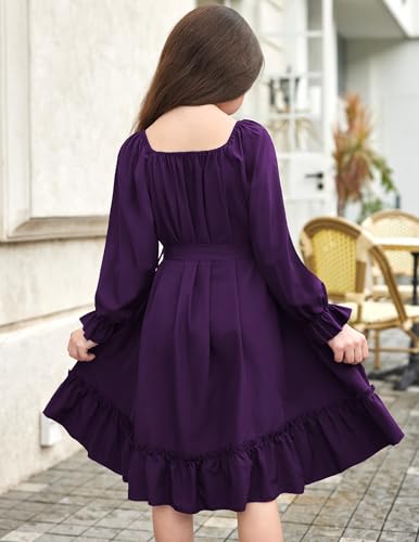 Arshiner Girls Long Sleeve Dresses Fall Party Formal Holiday Swing Flowy Ruffle Midi Dress 6