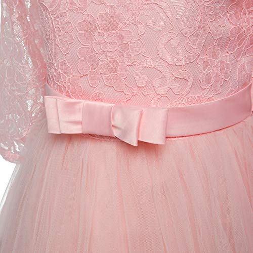 REXREII Flower Girls 3/4 Sleeves Lace Tulle Dresses Jr. Bridesmaid Wedding Party Birthday Pageant Communion Dance Ball Gown 5