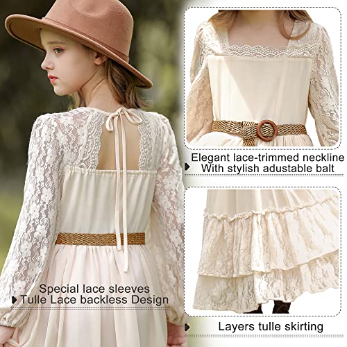 Girls Lace Dresses Backless Full-Length Toddler Boho Dress,Boho Flower Girl Dresses for Wedding Party Easter 4