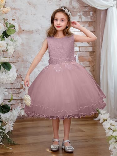 ABAO SISTER Flower Girl Dress Lace Tulle Communion Party Sleeveless Bow Dresses 2-13 Year Old 3