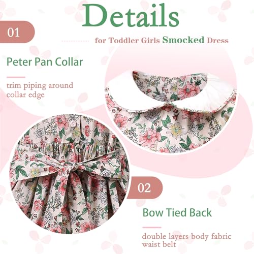 Toddler Girl Dress Smocked Floral Vintage Dress Tea Party Cotton Spring Summer Dresses for Girls,Size 2t-8y 1