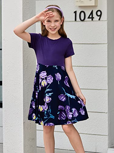 GORLYA Girls Short Sleeve Floral Print Casual Fit and Flare Party Dress with Pockets 4-12 Years 6