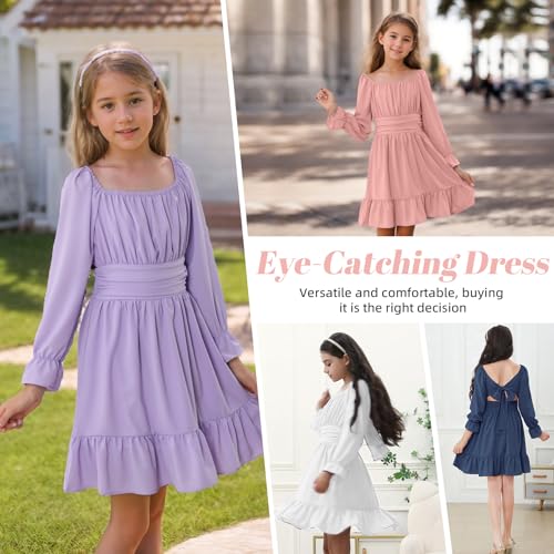Zando Girls Dresses Off Shoulder Back Tie Dress 6-16Years - Long Sleeve Fall Dresses for Girls Junior for Parties Daily 3