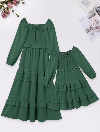 • MOM AND ME DRESS FALL WINTER: mom and me fall dress for mom and daughter matching dresses, elastic square neck dress can also wear as off shoulder dress, you and your daughter will love this matching mommy and daughter dresses fall dresses. Slim fit midi long A-line dress style mommy and me boho dress, flattering bodyline, this mommy and me dresses fall winter dress will make you and your daughter looks slim and tall.