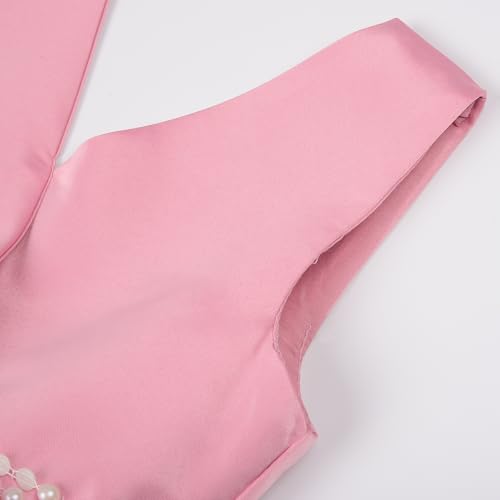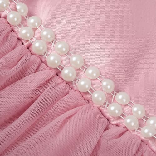 JerrisApparel Girls' Tulle Flower Girl Dress Sleeveless Princess Party Gown for Kids with Pearl Waist Large Bow 5