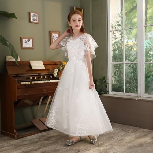 Lace First Communion Dress Ruffle Sleeves Flower Girl Dresses for Wedding Girls Pageant Ball Gown 6