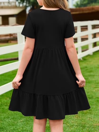 Haloumoning Girls Dresses Kids Summer Short Sleeve Square Neck Dress with Side Pockets 5-14 Years 5