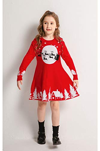 SMILING PINKER Girls Christmas Ugly Dress Reindeer Santa Warm Sweater Jumper 6