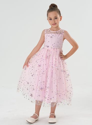HOT ! 2Bunnies Girls’ Sparkle Star Mesh Illusion Neck A-Line Tulle Maxi Dress