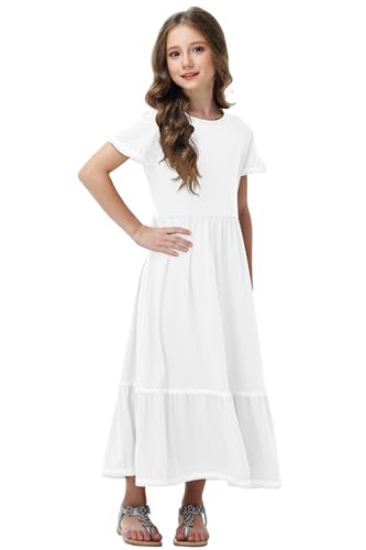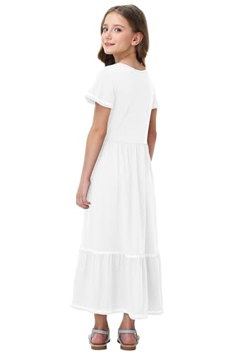 Remimi Girls Summer Short Sleeve Dress Casual Flowy Maxi Dresses 5-14 Years 5