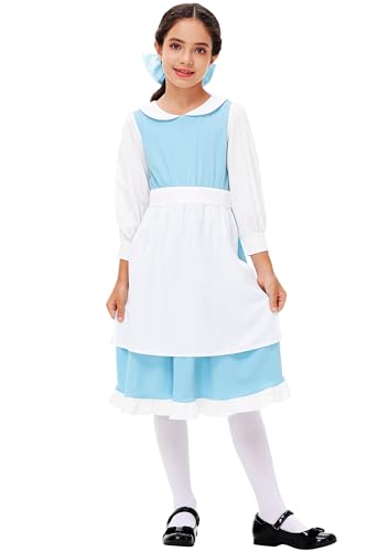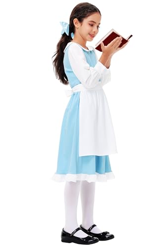 • Womens Blue Maid Dress: Dressing Up with a Dark Brown Ballet Flats and a Blue Ribbon on Hair to Become Princess and Travel in the Ocean of Books with Her. Flare Dress and White Apron ONLY, Other Accessories not Included.