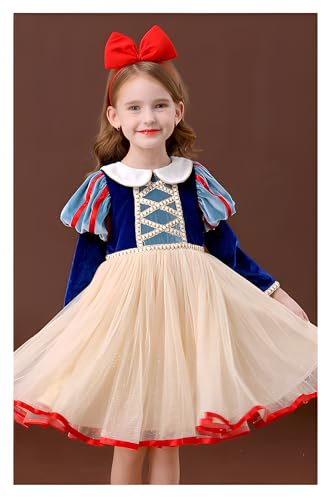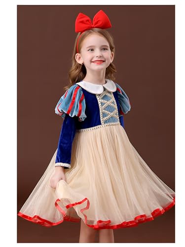 HOT ! Girls' Velvet Dress with Sequin Mesh,Snow White Dresses,and Bow Headband,Autumn and Winter,Blue