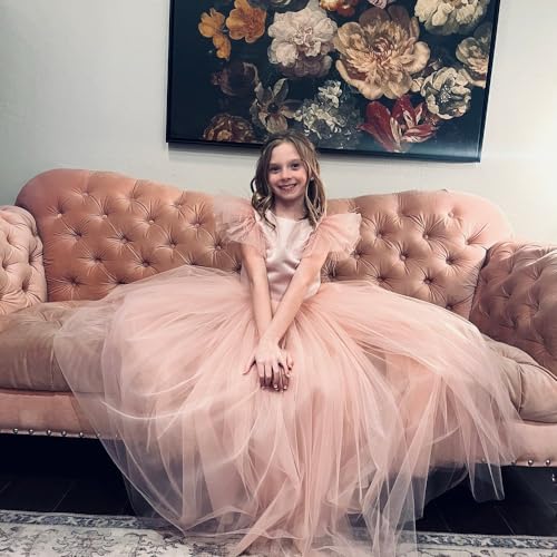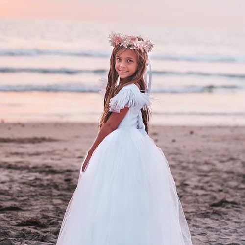 • High Quality Material: This tulle flower girl wedding dress is made of superior tulle and satin fabrics,feathers on the cap sleeves for a more elegant look.Very soft and comfortable,skin friendly and breathable.Great gift for your little princess, little daughter and granddaughter.