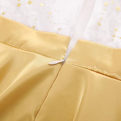 • Sparkle Velvet Long Sleeves: The dress features long sleeves made from soft sparkle velvet, boasts a delightful pattern of gilded stars that adds a touch of magic and charm, making your little girl feel like a princess , and it provide warmth and a glamorous touch. It adds an elegant contrast to the overall design