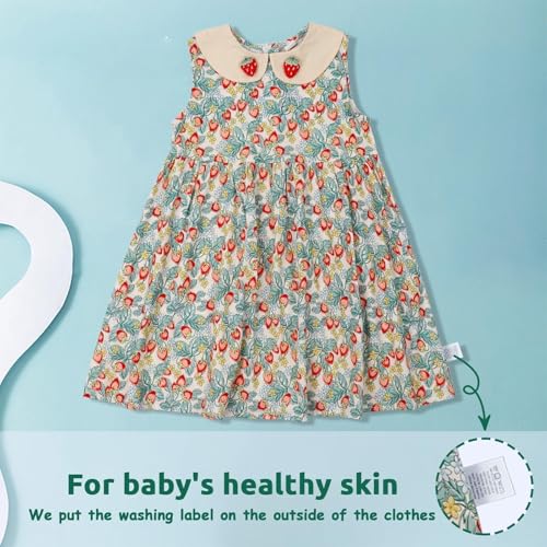 Little Bitty Toddler Girls Dresses Cotton Sleeveless Casual Strawberry Print Summer Sundress for Kids Size 2-7T 3