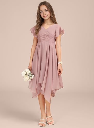 HOT ! dideyttawl Junior Bridesmaid Dresses Short Flutter Sleeves Chiffon Pleated Flower Girls Dress Flowy Prom Gown for 4-16 2505