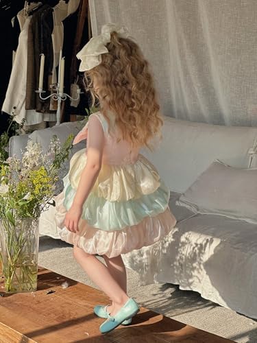 • 【Vibrant rainbow cake and bow design】 This adorable dress features a low-saturation rainbow cake and bow design that adds a sweet and colorful touch, perfect for birthdays, parties or everyday fun. The cheerful design will delight little ones and make them stand out.