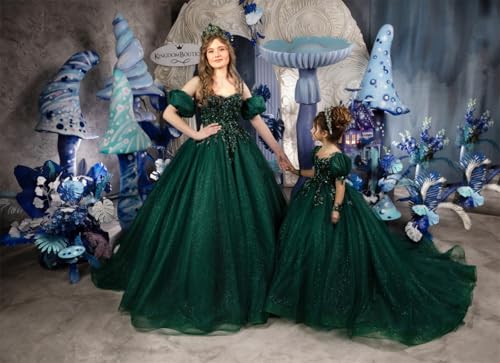 GZCYL Emerald Green Pageant Dress for Girls Sparkly Girls Christmas Dress Long Sleeves Flower Girl 1