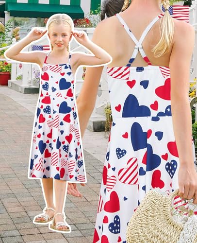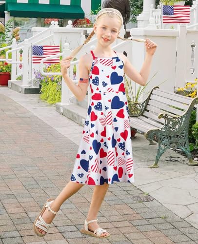 Girls 4th of July Summer Dresses Patriotic American Flag Adjusted Spaghetti Strap Dress Size 4-11 6