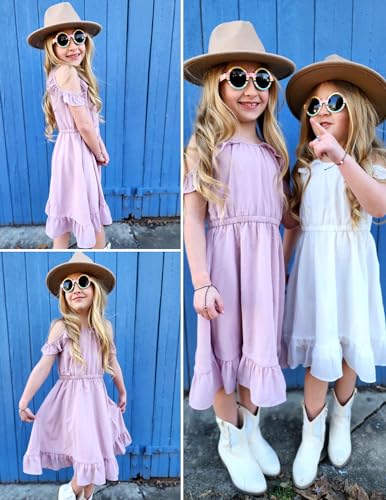 • Unique design: Girls sleeveless sundress make your girl look sweet.Ruffled neck, tonal lining, and elastic waistline adds charm.The keyhole back design makes girls swing dress easy wearing.