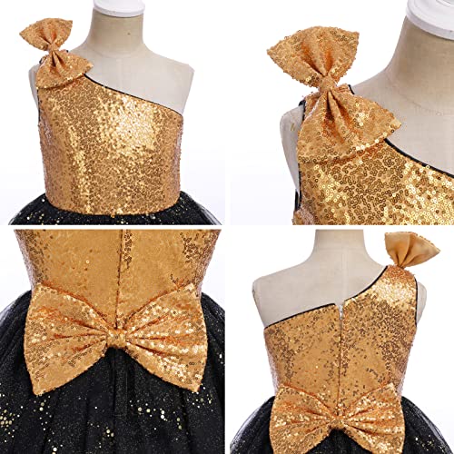 Kids Girls Bowknot Sequin Tulle Party Dress One-Shoulder Wedding Bridesmaid Flower Girl Dresses Pageant Formal Prom Ball Gown 6